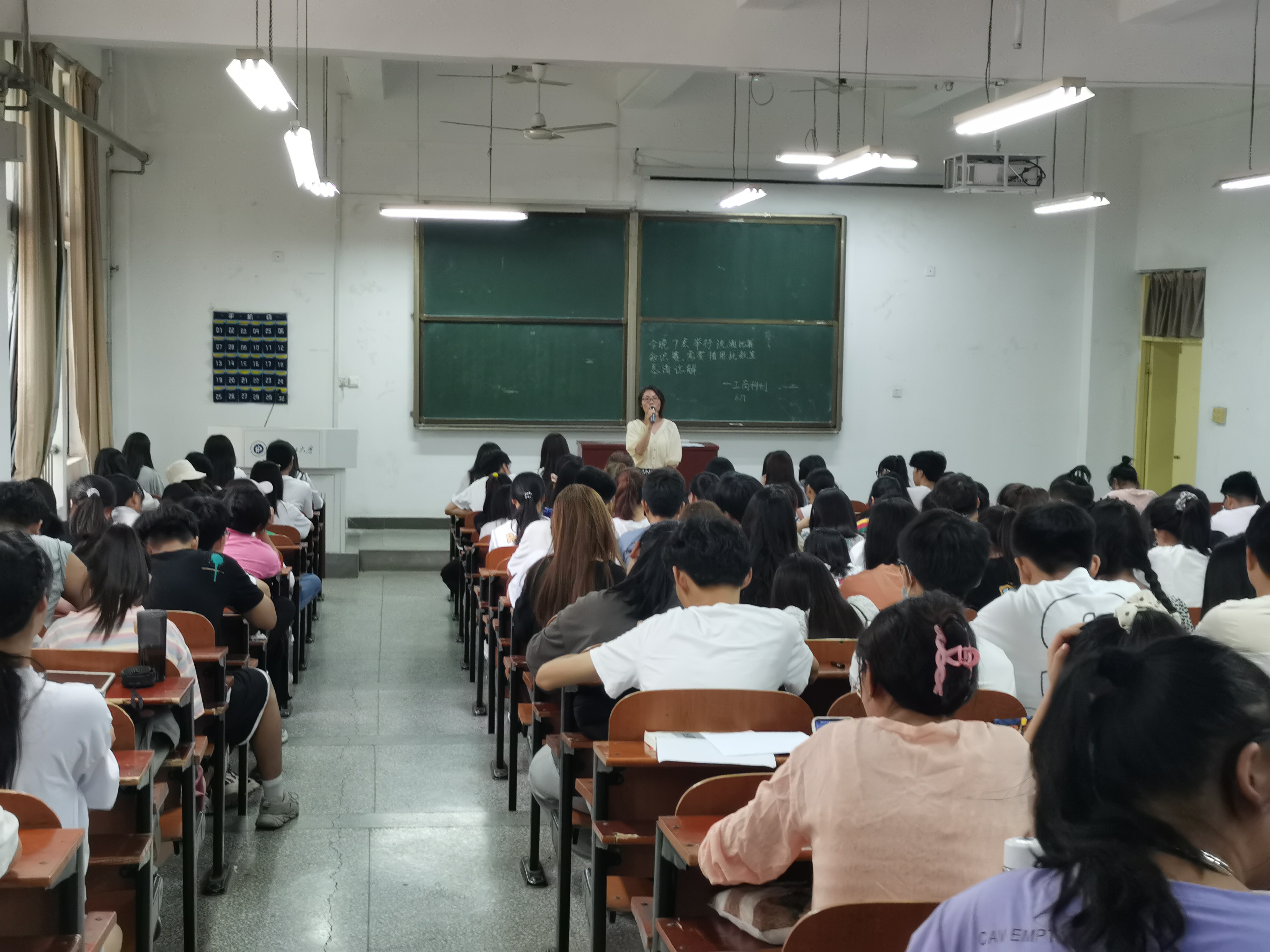 王妍以“心手相牵,与爱同在”为主题,从学生学习、情感、人际交往、毕业季考研择业等几个重要方面阐释了心理健康的重要意义。通过实际案例充分强调了理解、倾听和共情的重要性,并从方法上进行了深入细致的引导。广大同学更清晰的了解如何保持心理健康,遇到问题如何鉴别是否心理健康问题,如何展开自助和助人,从而“心有光芒,心向阳生”,一路“阳光好心态,快乐齐相伴”。接下来,王妍以建党100周年和神州十二号载人飞船发射圆满成功为案例充分激发在场同学的国家荣誉感和民族自豪感,分析国内外形势,号召广大同学爱国爱党爱校,增进个人政治意识的敏锐性,努力学习增长本领报效祖国。接下来她援引最近频发的网络诈骗事件,分析了高校校园诈骗的基本方法和手段。她指出,网络诈骗以网络兼职刷单、电商客服电话诈骗、买卖游戏装备诈骗、冒充学校领导诈骗、兼职中介诈骗、网路贷款等诈骗手段为主,案件呈现数量上升,手段翻新等新情况。她要求同学们学会识别诈骗手段,提高安全防范意识,不轻易相信陌生人的电话信息,不轻易加入陌生群和陌生平台,一旦发生诈骗案件要第一时间报案。最后她强调了宿舍安全、卫生,学风考风考纪等问题,预祝广大同学期末考出好成绩。