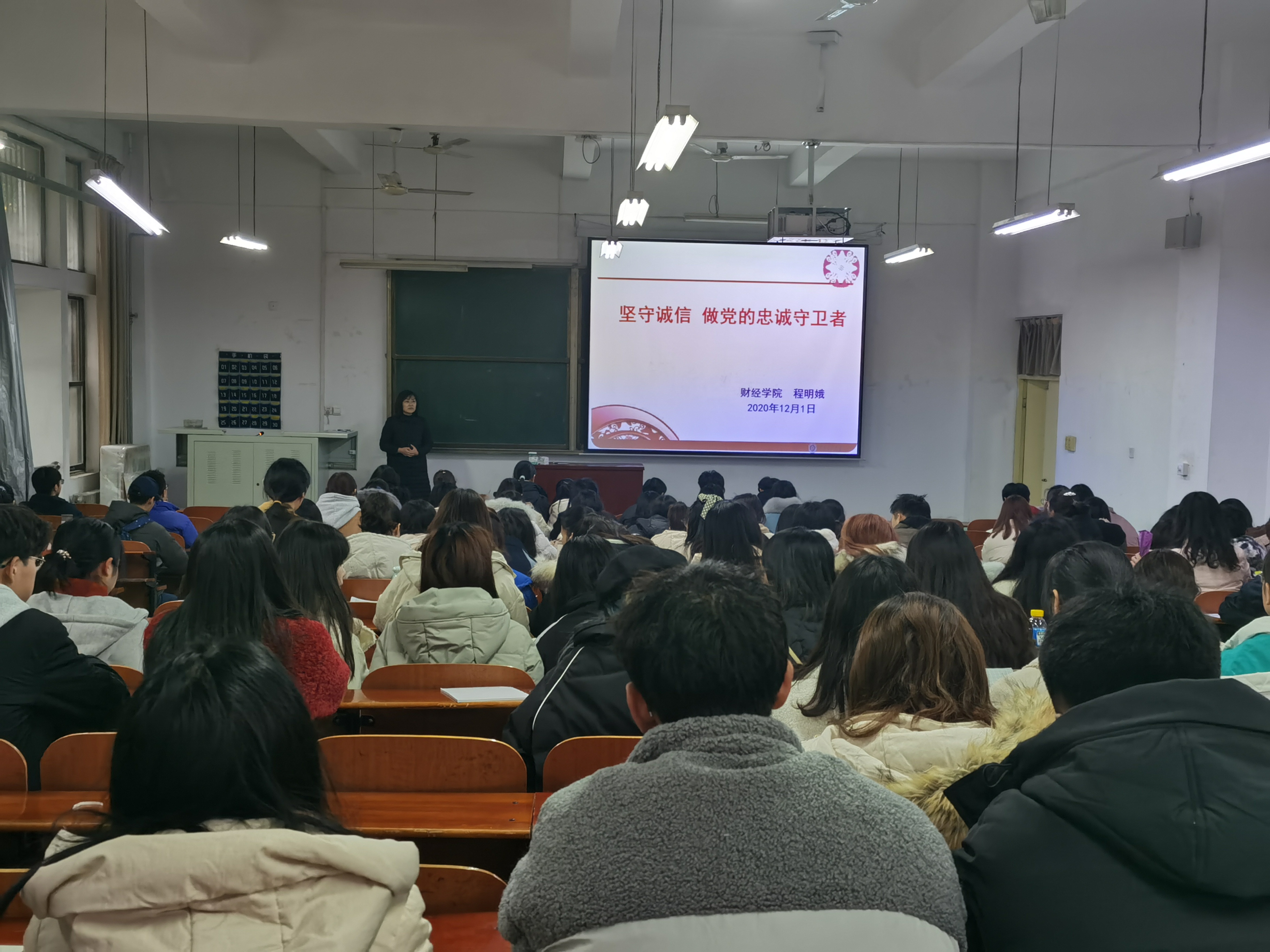 12月1日,新葡萄8883官网amg官网副院长程明娥在经管楼1112教室为全体党员上《坚守诚信、做党的忠诚守卫者》的专题党课。