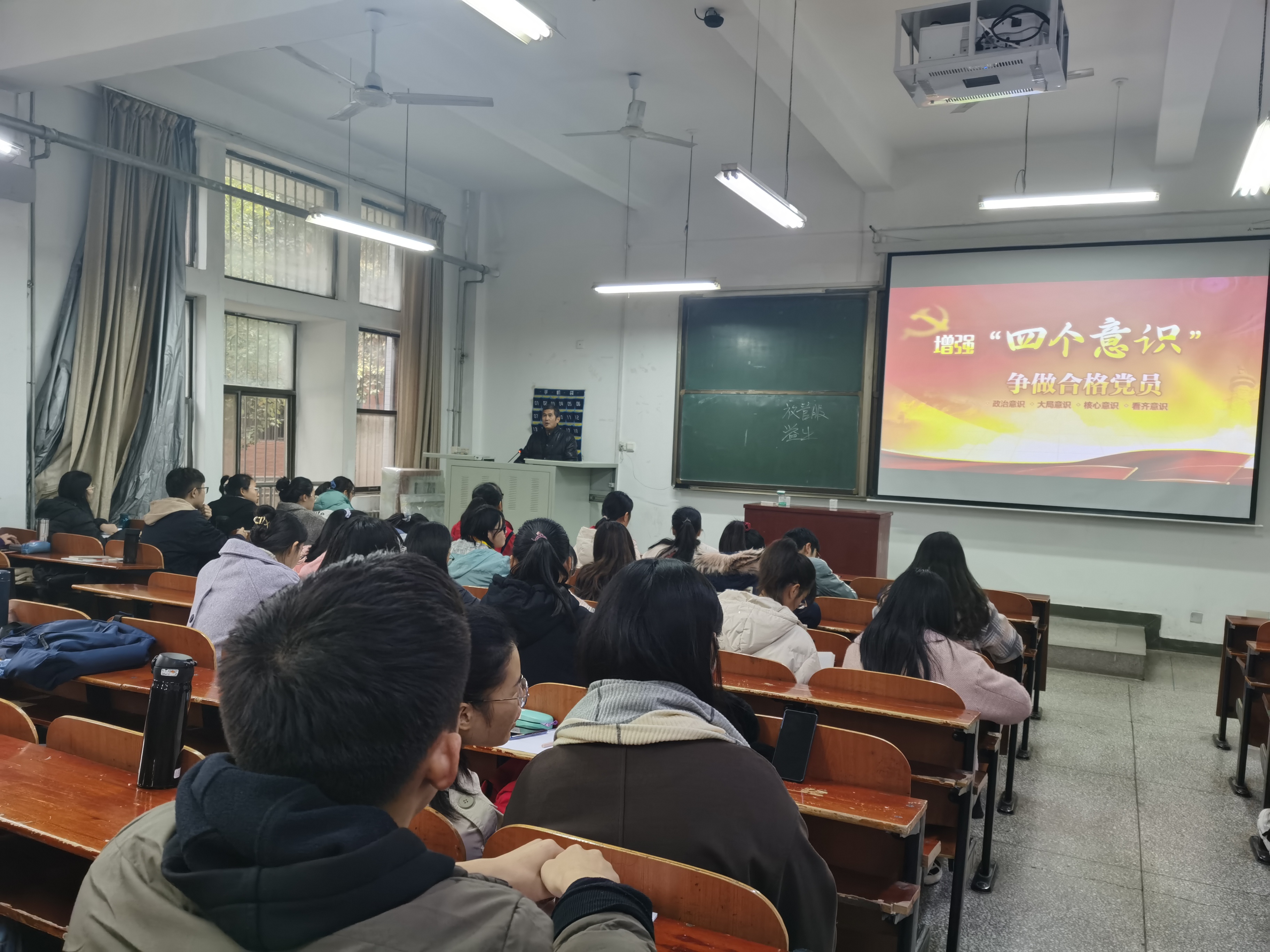 11月24日,新葡萄8883官网amg官网党委书记李桂林在经管楼1112教室为全体党员上《增强四个意识,争做合格党员》的专题党课。