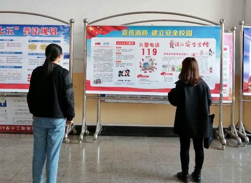 此次的消防安全展板详细向同学们展示说明了防止火灾的基本措施、消防安全的“四个能力”及“三个提示”等一系列消防安全知识,并以图文并茂的生动形式进行了消防宣传能力的培训。更有朗朗上口的“四懂四会”顺口溜传授实用的消防知识,简洁明了地介绍了灭火器的使用方法,为学生的安全校园生活做了进一步的保障。
