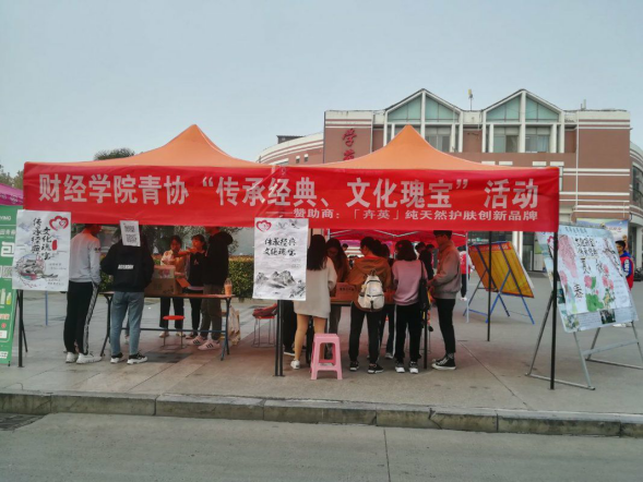 为加深同学们对古代文化常识的了解,感受传统文化的魅力,弘扬志愿者精神。新葡萄官网青协于11月9至10日在学苑餐厅东门举办了“传承经典,文化瑰宝”活动。