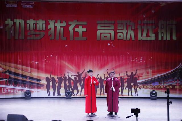 梁丽娟代表学院向毕业生表达了真诚的祝福,希望大家担负起青年的责任,拥抱新时代、奋进新时代,让青春在为祖国、为人民、为民族的奉献中焕发出更加绚丽的光彩!晚会在青春洋溢的舞蹈中拉开了序幕,绚丽的灯光,动感的舞步点燃了全场观众的热情。为庆祝我校110周年华诞,师生合唱了《河南理工大学校歌》和《我的祖国》,唱响理工,爱我中华,曲风恢弘壮阔,荡人心弦。歌伴舞《知否•繁华梦》把歌曲幻化成曼妙的舞姿,在悠扬歌曲舞姿中看到一场清欢一帘梦;相声《大学青春》以诙谐的语言,展现了大学好友之间亲密无间的友情;连唱《attention 》和现代舞《moonlight》以缠绵的音律,优美的舞姿演绎了新时代大学生青春的魅力;舞蹈《相思》以独特的节奏,扣人心弦的声线与韵律让现场观众沉迷其中;潘启东老师带来的歌曲《驼铃》曲调婉转悠扬,感情充沛,和留学生阿尔法一起合唱《北京的金山上》,令在场观众掌声不断;《让我留在你最好的那年》唱出了毕业生们大学时光深深的不舍和留恋;最后,晚会在风格独特的走秀《最后的华尔兹》中落下帷幕。