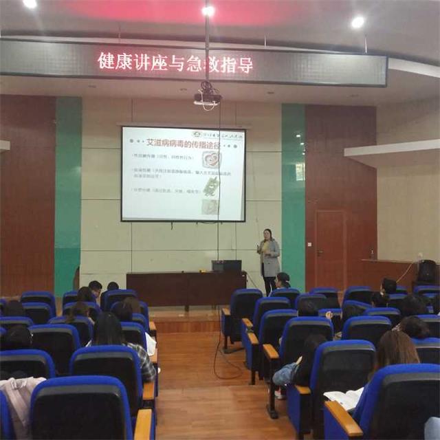 讲座分为四个环节,主讲为焦作市第三人民医院主任医师和医护人员。首先感染一科主任兰云从认识艾滋病、艾滋病流行现状、艾滋病的传播途径、艾滋病的预防和检测、我国青年学生艾滋病流行趋势等方面为大家讲解了艾滋病的防控,珍爱生命,让“艾”远离。接下来结核病门诊副主任杨帆从什么是结核病、肺结核有哪些表现、肺结核的传播途径、肺结核的检测和预防等方面为大家介绍了结核病的防控知识,尤其是在高校人员最密集的环境,更应该充分重视肺结核的预防。第三个环节由感染二科副主任冯海群从性病传播途径、性病的危害、常见性病种类、性病的预防等方面介绍了性病知识。最后,医护人员给大家介绍了一些常见的急救措施并邀请同学参与互动,重点进行了心肺复苏和人工呼吸的操作方法。