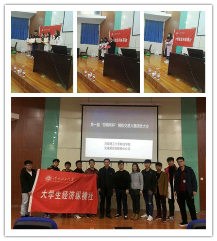 宝城期货郑州营业部作为对接我校的重要券商,从大赛动员、培训到大赛的推进,提供了全程跟踪指导,取得了良好效果。河南理工大学经济纵横社的全体成员精诚团结、分工合作,圆满完成了这次大赛的组织协调任务,为大赛顺利开展做出了贡献。作为高水平的实践教学和实务训练平台,这次大赛为同学们提供了实践锻炼的机会,是对课堂教学的有益补充,让参赛的同学们在成长的道路上获得了宝贵的实战经验。