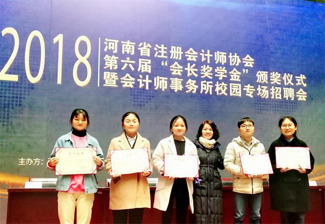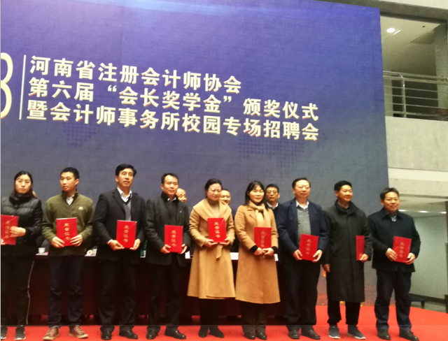 11月16日,河南省注册会计师协会在河南财政金融学院举行了隆重的“会长奖学金”表彰颁奖仪式暨会计师事务所校园专场招聘会。学院院长梁丽娟和会计系副主任张如老师带队参加了活动。