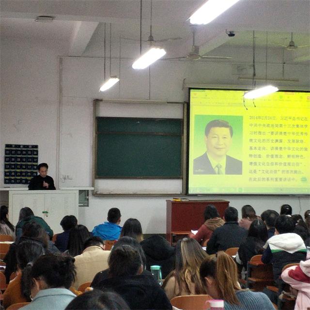 11月6日,学院党委副书记辛文昉在经管楼1104教室上题为《坚持文化自信 实现民族复兴》的党课。新葡萄官网全体党员参加了党课学习。