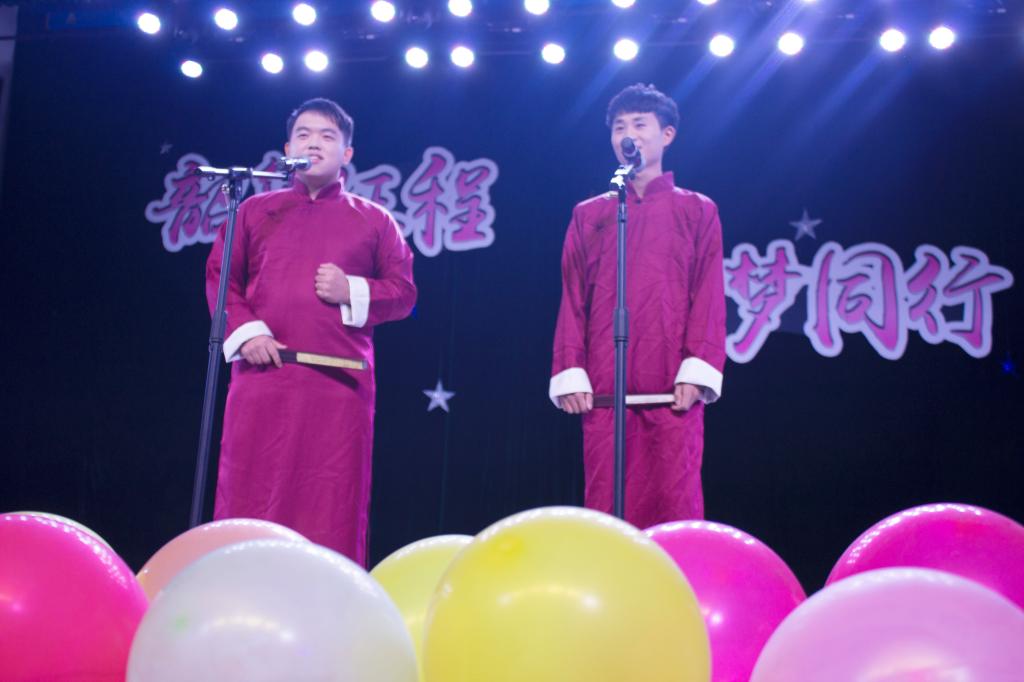 晚会在一场激情四射的爵士舞中拉开帷幕,动感的舞蹈、激昂的音乐瞬间点燃全场的氛围。诗朗诵《少年中国说》声音慷慨激昂、掷地有声,展现了学院学子的青春活力;对唱《不该》歌声悠扬婉转,带领观众回忆起曾经的美好;由学院教师王妍等人带来的舞韵瑜伽《云水禅心》伴随着舒缓的音乐带观众进入瑜伽的世界,领略瑜伽中的文化底蕴和魅力;相声《满腹经纶》、小品《钱在哪呢》用幽默诙谐的表演让观众们捧腹大笑,展现了语言的魅力;民舞《红昭愿》柔中带刚,以曼妙的舞姿带给观众一场视觉盛宴;歌曲《大鱼》空幽的歌声、优雅的舞姿将现场氛围推向高潮;走秀《写意青春》通过模特自信的笑容和有力的步伐展示出当代大学生的朝气蓬勃。最后,晚会在大合唱《知足》中完美落幕。