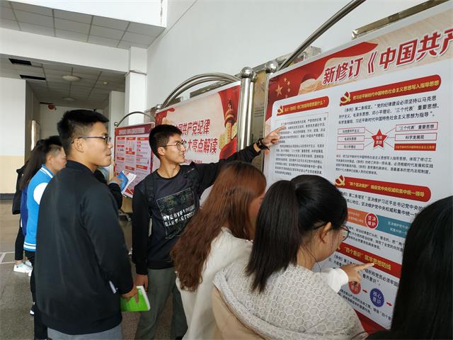 根据学校《2018年党风党纪教育月活动方案》工作要求,近日,新葡萄官网精心制作了党风党纪展板在经管楼大厅将对新修订的《中国共产党纪律处分条例》进行了介绍、解读和展示,供学院师生观看学习。