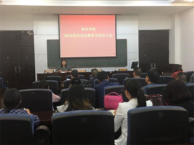 为加强党员干部政治纪律和政治规矩教育,增强广大党员干部纪律规矩意识,促进以案促改制度化常态化,推动全面从严治党在学校落地生效,根据学校工作安排,10月9日下午,新葡萄官网在经管楼1304会议室召开以“严格遵守和维护党的纪律 持之以恒正风肃纪”为主题的党风党纪教育月动员会。会议由院长梁丽娟主持,学院全体党员参加动员会。