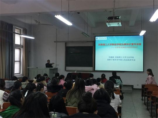 为提高新葡萄官网师生学法守法的意识,11月30日下午,学院在经管楼1112教室举办了法律知识宣传讲。讲座由我校文法学院教师刘建新主讲,新葡萄官网师生参与了活动。