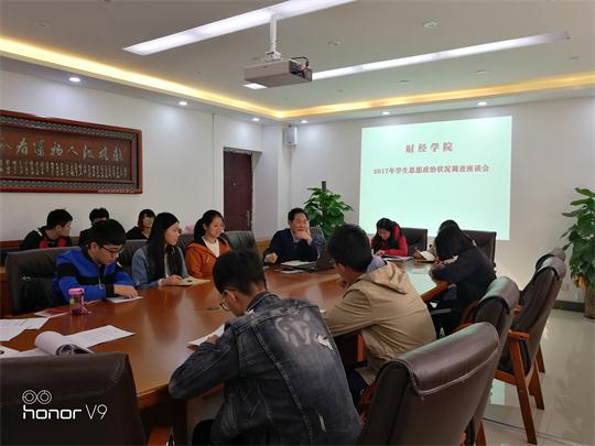 11月3日下午,新葡萄官网在经管楼2102教室召开了思想政治状况调查座谈会。会议由党委副书记辛文昉主持,辅导员张贞和以及来自各专业年级的学生代表参加了座谈会。