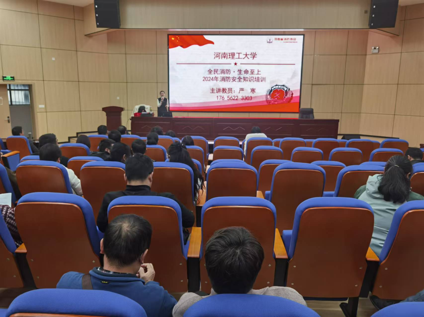 11月12日,为普及消防安全知识,提升教职工的火灾处置能力,学院在尚为学术报告厅举办消防安全专题培训活动。党委书记王景琳、院长刘霞辉等班子成员和全体教师参加培训。此次培训由河南省消防协会教官严寒主讲。