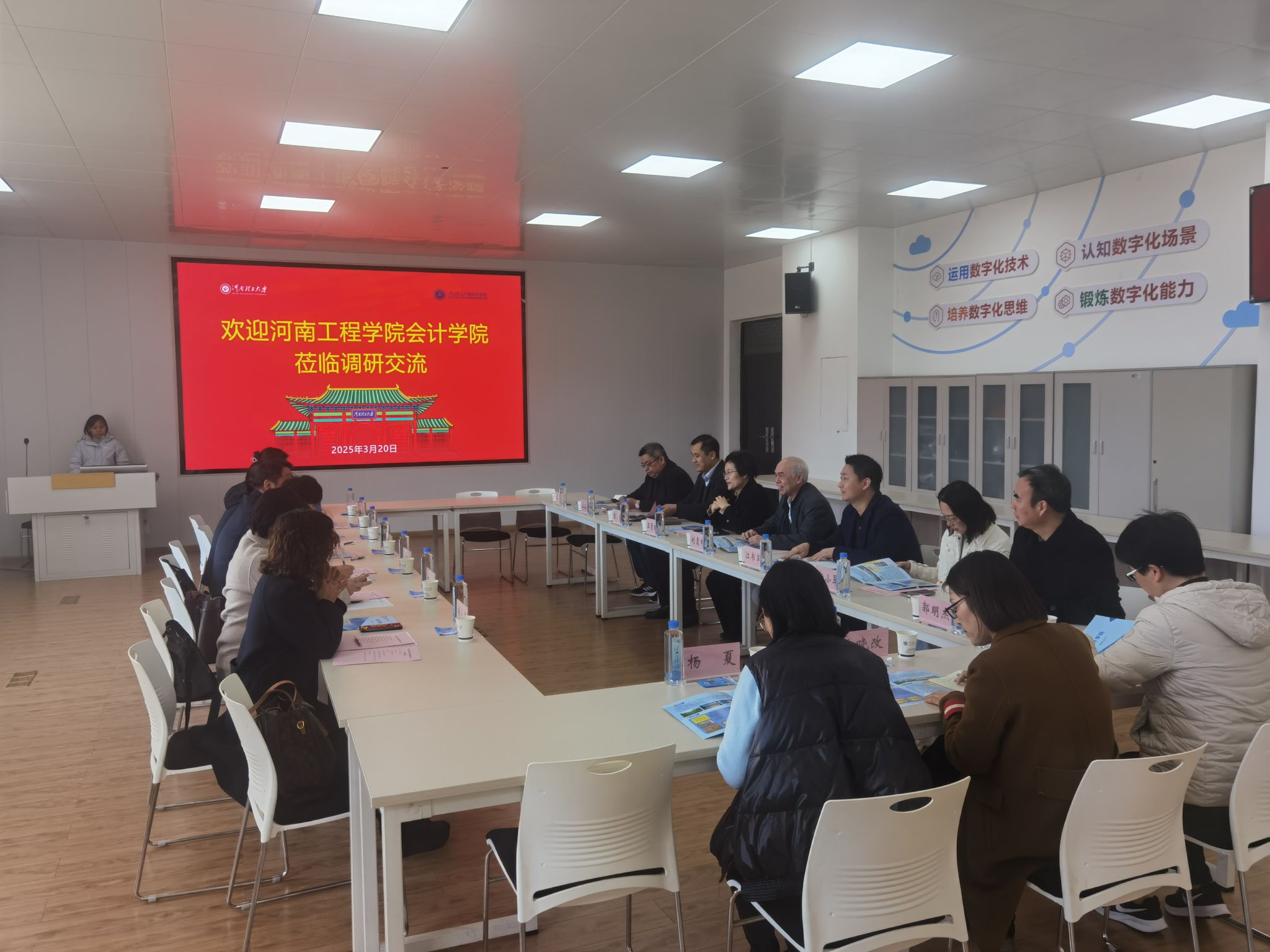 3月20日上午,河南工程学院会计学院党委书记(院长)程光一行到我院调研交流。财经学院领导班子成员、教科办、各系主任及教工党支部书记等参加了此次交流活动,活动由该院党委书记王景琳主持。