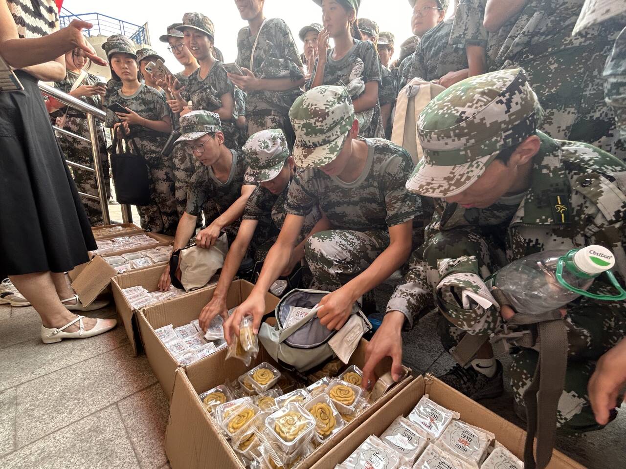 本次活动在学院领导的精心组织下拉开帷幕,旨在通过面对面的交流,深入了解新生军训情况,传递学院的人文关怀。首先,院党委副书记张良代表学院向辛勤付出的承训教官表达诚挚的感谢,对新生们在军训中展现出的良好风貌给予充分肯定。随后,张良、李静等领导将精心准备的月饼发放到承训教官和军训新生手中,并致以温馨的节日问候,彰显了学院对军训工作的高度重视,也寄托了对新生的美好祝愿。在学院领导的积极鼓舞下,2024级新生军训队伍展现出前所未有的高昂斗志,纷纷表示将会以更加饱满的精神状态投入到接下来的军训中,不畏困难、勇往直前,用实际行动展现财经学子的坚韧与风采。